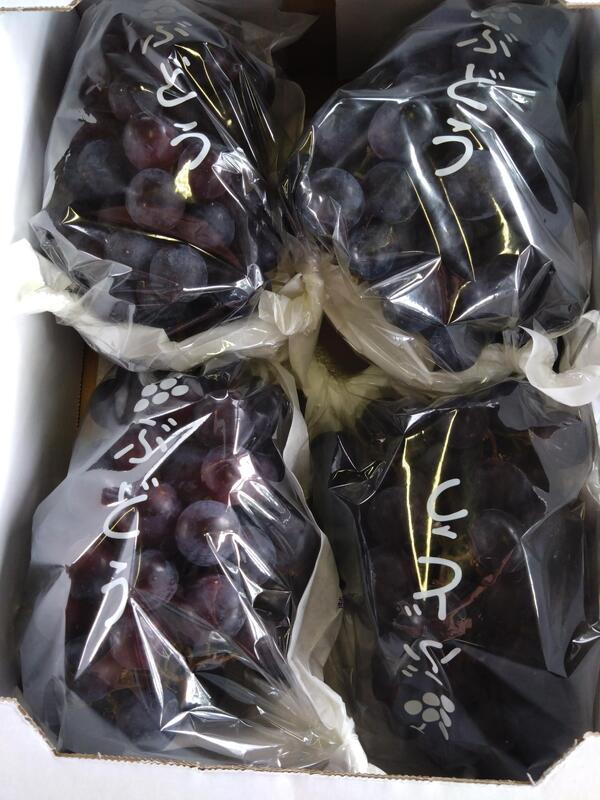 ※マスカットベリーAはニューベリーAという名称で売られていることもあり、ジベレリン処理で種なしになったものを言うそうです★最近はどちらも種なしで販売されていることが多いようです。本校も種なしです。巨峰と同じような黒に近い濃い紫色をしています。