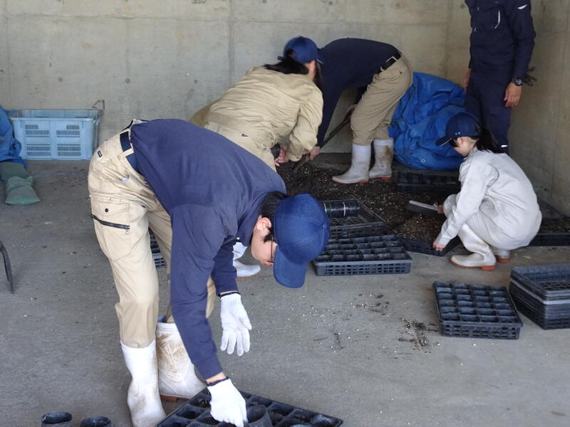 生徒は播種から鉢上げ、その後の管理まで学んできました