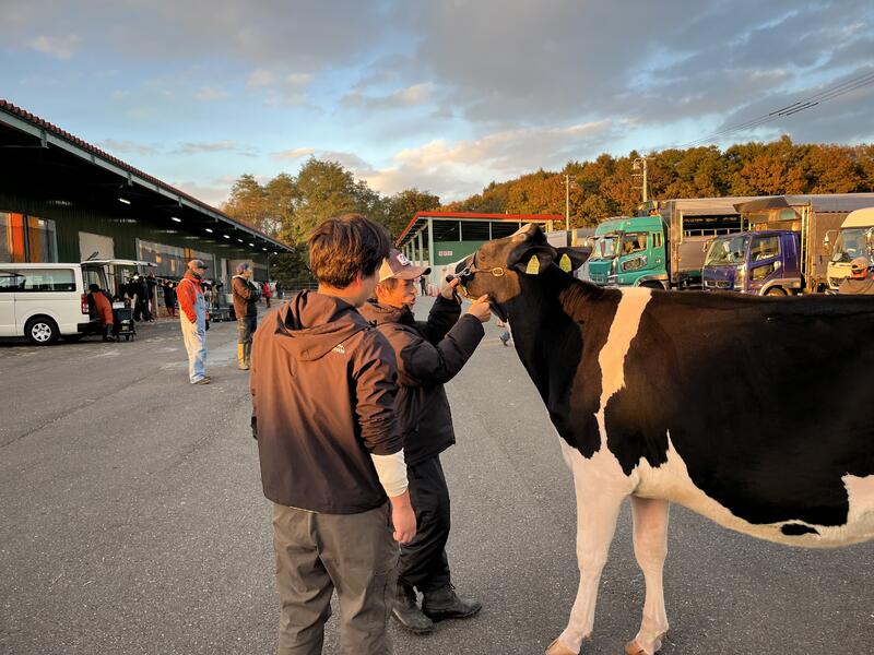 生徒たちは牛の後ろで待ち構えています。糞を取ったら「ナイスキャッチ!」と言うとか言わないとか。牛が好きな人にしか理解できないことかもしれません。