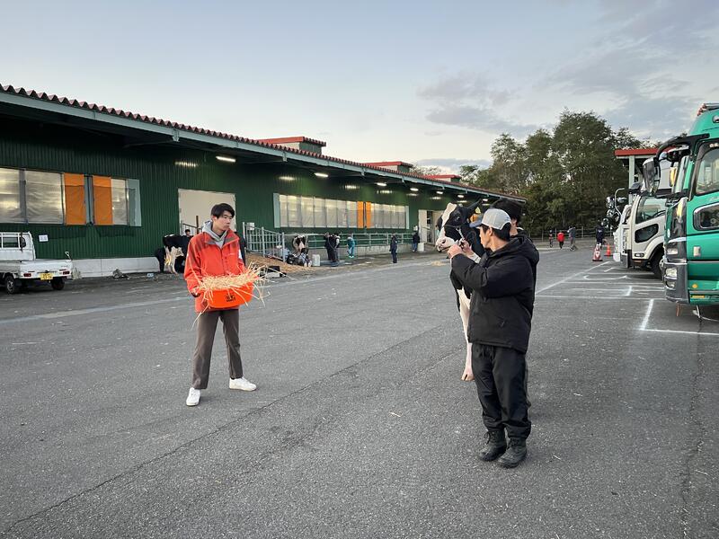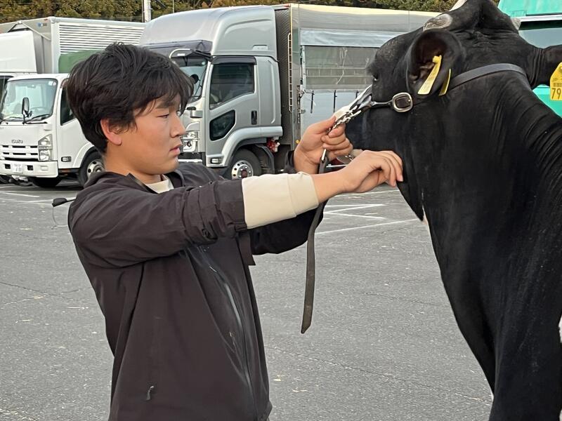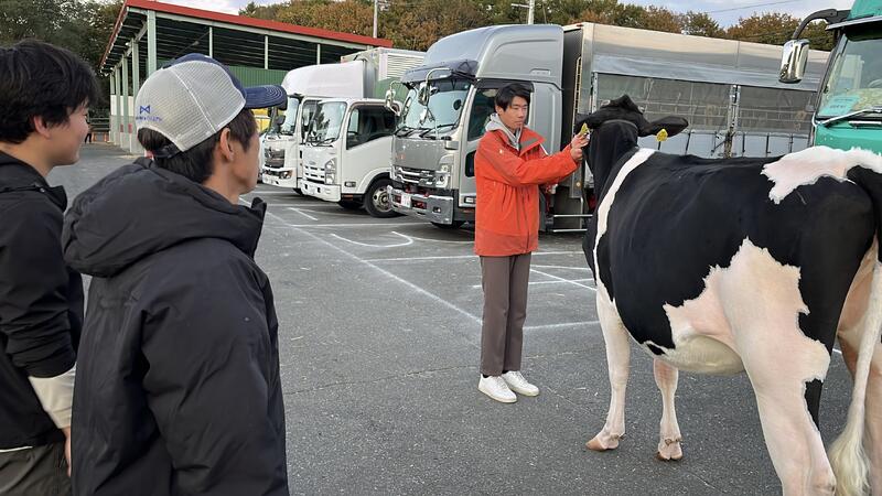 本当に魔法かと思うほど、牛を上手に扱います。しかも、松島さんにとっては初めて会った牛。まずは説明を聞き、金子君も練習に励みました。