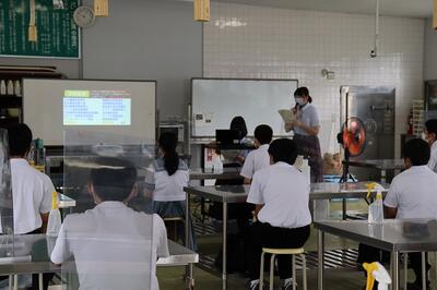 食品科学科の体験入学では、在校生とによる学校紹介・学科紹介と