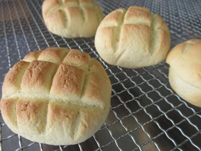 しっかり膨らんでおいしそうなメロンパンが焼き上がっていました!