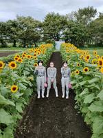生徒たちはきれいに咲いたヒマワリに感動していました。