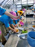 写真は1、2年生で3号ポットへ移植をしているところです。