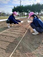 この畝は1年生が前日に立てたものです(^^)きれいに畝立てができているのにも感心したのですが、
