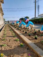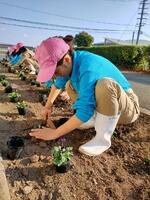 パンジー、ビオラの花苗を本校農場センター横の花壇に定植しました。