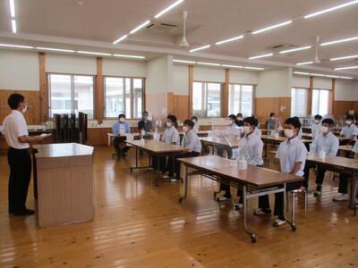 農業科では2年生16名が受け入れ農家様のお宅に宿泊させていただきながら農業の仕事を体験させていただきます。生徒たちは緊張した様子で受入式に臨んでいました。この現場実習でいろいろなことを経験し、学校では学ぶことのできないことをたくさん学んできてもらいたいと思います。