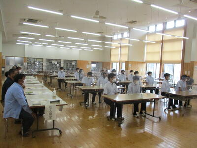『第10回菊池米食味コンクール』の審査員として、『菊池市米飯官能鑑定士』の資格を持った農業科3年作物専攻生の生徒2名が審査員として参加してきました。『個人総合部門』30検体・『環境王国菊池基準登録部門、集落部門』15検体の官能審査を行いました。官能審査とは、『色・ツヤ』『香り』『粘り』『食感』『食味』を自分の五感で感じ取って審査をすることです。生徒は、初めてのことで緊張した様子でしたが、無事終わることが出来ました。良い経験ができたのではないでしょうか。農業科の卒業生も審査員や入選者として活躍してくれていました。今後も農家の方々の頑張りを見習い、お米栽培に取り組んでいきたいと思います。