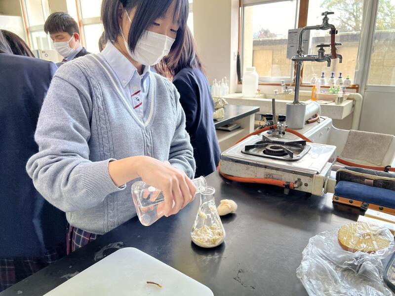 それぞれを細かく乳鉢ですりつぶし、三角フラスコに入れて殺菌水を加え、2~3日静置培養します。
