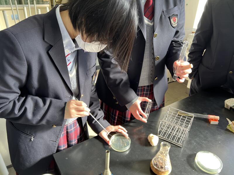 2年生の食品微生物は、アルコール生産酵母の分離を行いました。