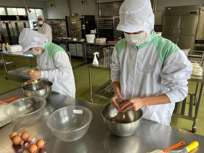 自分たちで作ったイチゴジャムを使用したロールケーキの製造を行いました