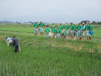農業科1年生がヒエ(田の草)取り実習を行いました。生徒たちは全員裸足になり田んぼに入り1列に並んでヒエを取りました。始めは稲とヒエを区別するのに苦労していましたが、慣れてくると素早くヒエだけを取り除くことができるようになりました。