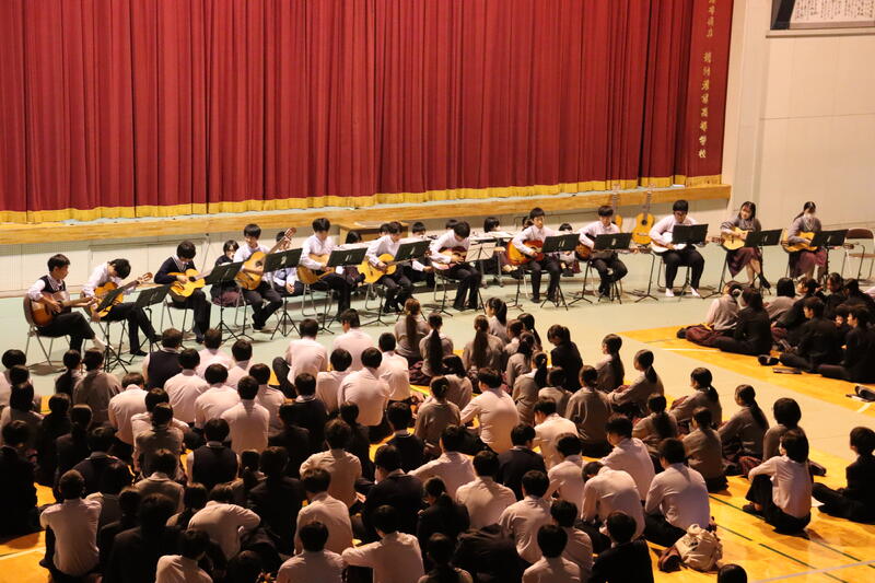③1年生音楽専攻者ギター・トーンチャイム演奏