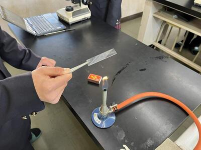この日は脂質の構造について学び、アクロレイン反応という実験を行いました