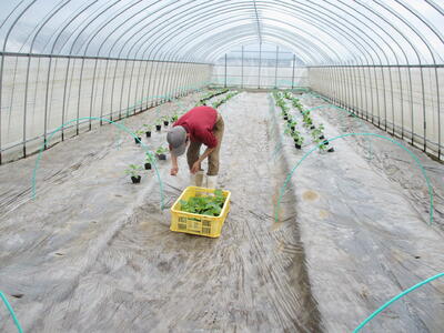それぞれのハウスの中で、アスパラガスや春夏野菜の苗を栽培し、4月から販売する予定です。