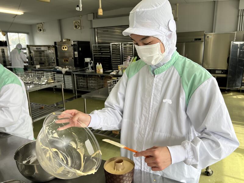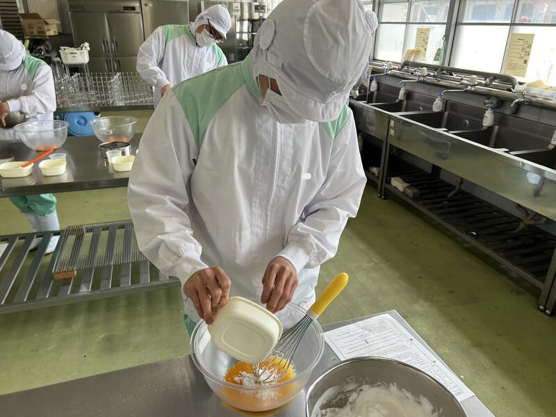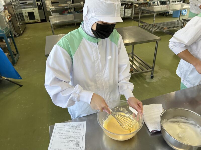 1年生の食品製造実習で、シフォンケーキを製造しました