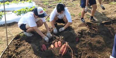 少し前のことですが、1C「農業と環境」の授業でサツマイモの収穫実習を行いました。