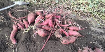 サツマイモを傷つけないように、さやしく丁寧に土を掘ってみると
