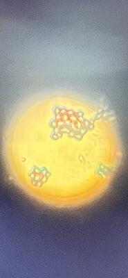 アルカリ性メチレンブルー溶液を使って、酵母を染色し、細胞を顕微鏡で観察しました
