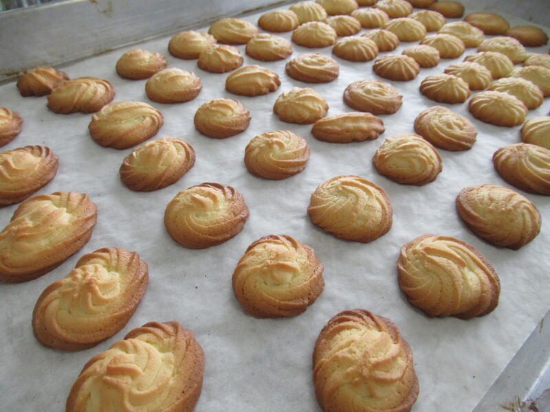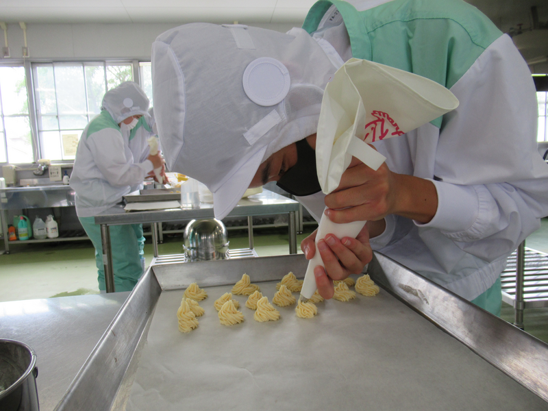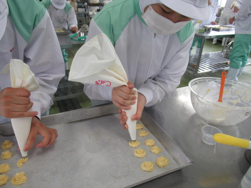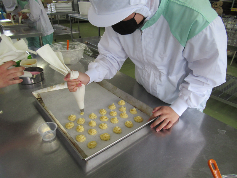 今回は絞り袋を使って「絞りクッキー」を製造しました。
