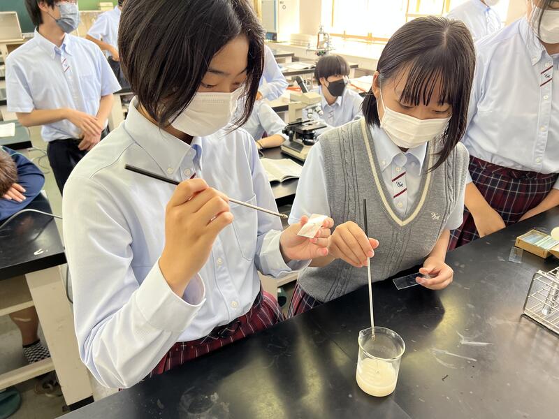 1年生は、現在タンパク質について勉強をしています。実験は、
