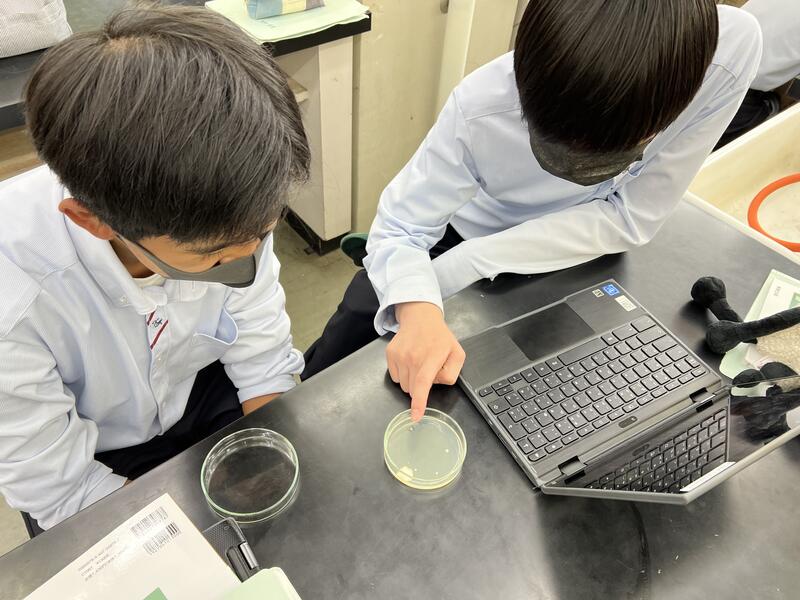 前回、各班が校内の好きな場所に培地の入ったシャーレを5分間置き、