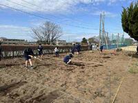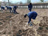 入学した頃には使い慣れなかったクワやスコップも、今ではお手の物ピース
