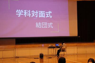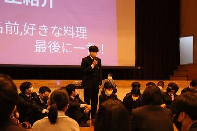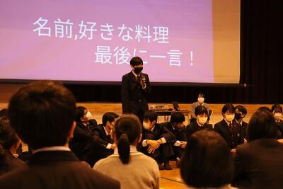 1年生の自己紹介や学科職員の紹介、3年生が作成した学科紹介動画などの後、