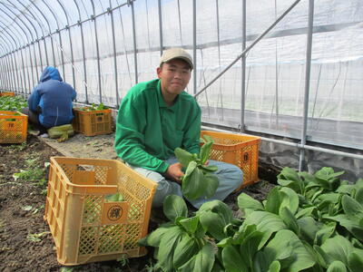 野菜専攻生が2月に播種を行った肥後グリーンの収穫を行いました。