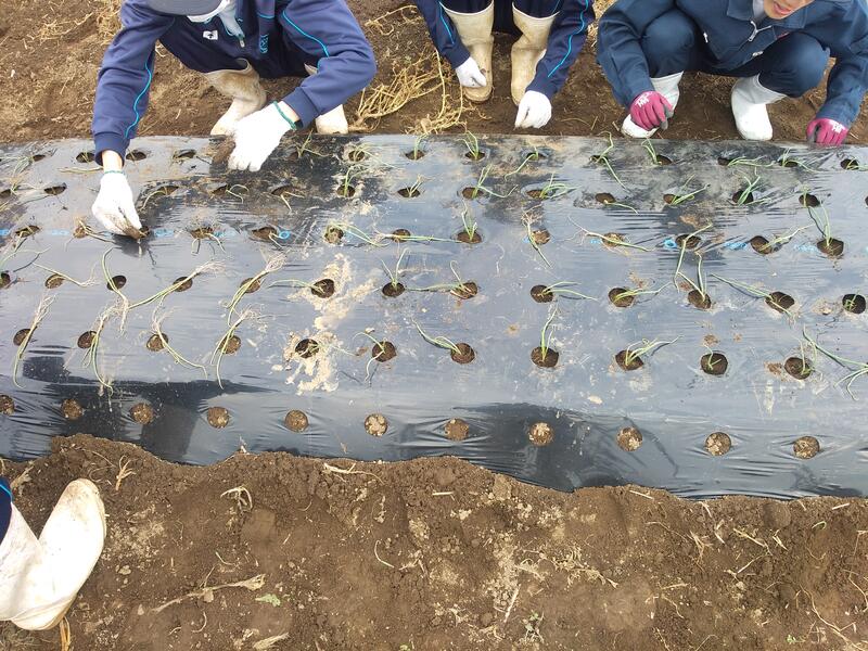 3年課題研究『有機農業』班 タマネギの定植と高菜漬け作り(農業科)