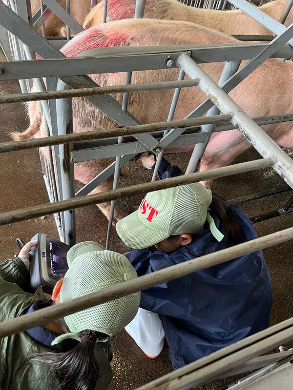 ブタの妊娠鑑定(畜産科学科)