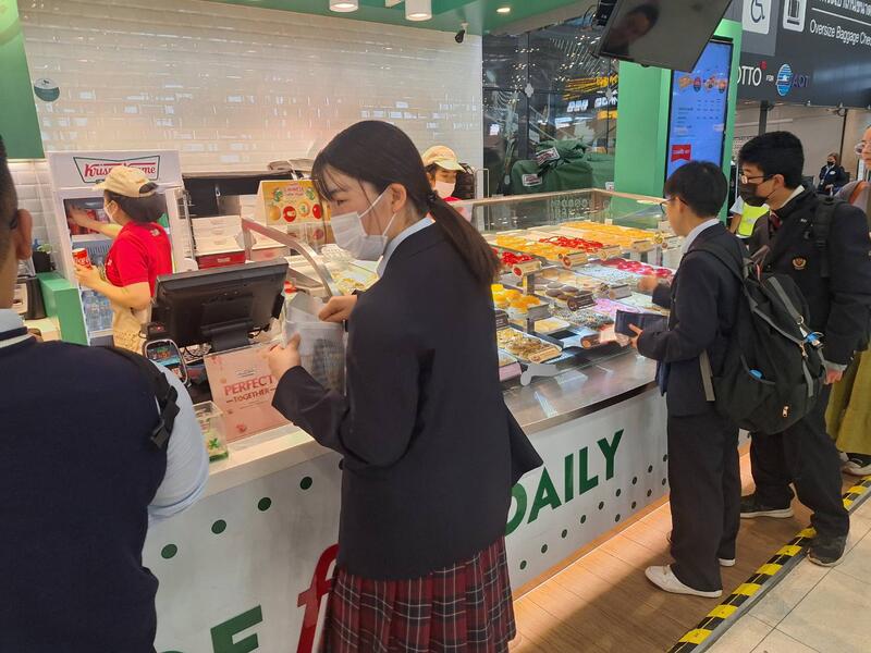 お昼はさくら学校の人たちとタイ式のmkをいただきました。その後、近くのモールで食生活調査をしました。日本の物価と比べて高い印象で、納豆は約400円もし、熊本産のイチゴも1パック約3千円、日本産の牛肉は1㎏約2万円と高額でした。タイでは日本の商品が人気でたくさん置いてあり、味が美味しいのもあって高くても売れるのだと1年生の田中さんが分析しました。
