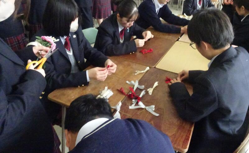 本日、午前中はタイ国のさくら日本語学校訪問を行いました。タイ国の人はここで約3ヶ月程度、日本語を学び、日本に研修生として行きます。まだ日本語を習って1週間ほどだという生徒さんが、緊張のなか挨拶などをすらすらと話していたので、とてもビックリしました。新しく教えてもらった日本語もすぐに話せていました。呑み込みがとても早いと感じました。FFJの缶バッチを渡したところ、みんな喜んでつけてくださり、とても嬉しかったです。(2年生 前田さんより)