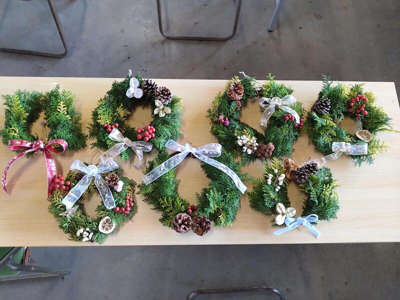 また、課題研究草花活用の授業で作ったクリスマスリースもプレゼントして喜んでいただきました。