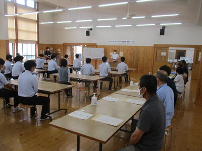 農業科では2年生16名が受け入れ農家様のお宅に宿泊させていただきながら農業の仕事を体験させていただきます。生徒たちは緊張した様子で受入式に臨んでいました。この現場実習でいろいろなことを経験し、学校では学ぶことのできないことをたくさん学んできてもらいたいと思います。