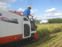 コンバインに乗り、稲刈り実習を行いました。(農業科)