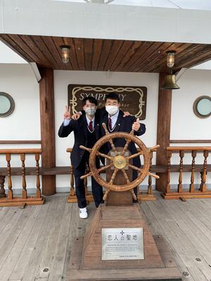 日の出埠頭で乗船前に、クラス集合写真撮影