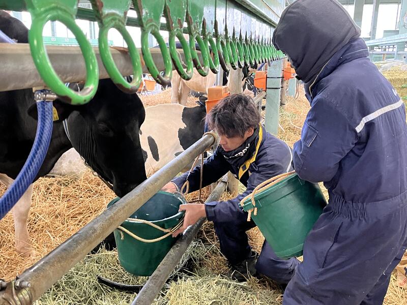 具体的な内容はエサを与える、糞をとる、糞を堆肥舎に運ぶ、掃除をする、搾乳をする、健康観察をするなどなど。みんな、多くの言葉は交わしませんが、牛や人の気持ちを考えながら、何をすべきか考えながら活動を続けます。