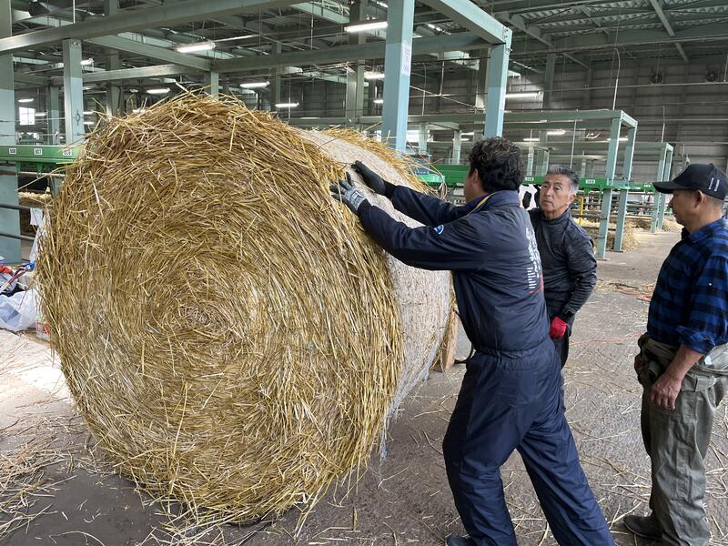 余談ですが、これ、麦稈のロールです。でかい。北海道ですね。