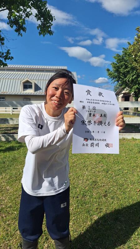 熊本県馬術連盟会長 「前川 収」様から賞状を授与していただきました。