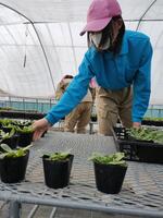 写真は1、2年生で3号ポットへ移植をしているところです。