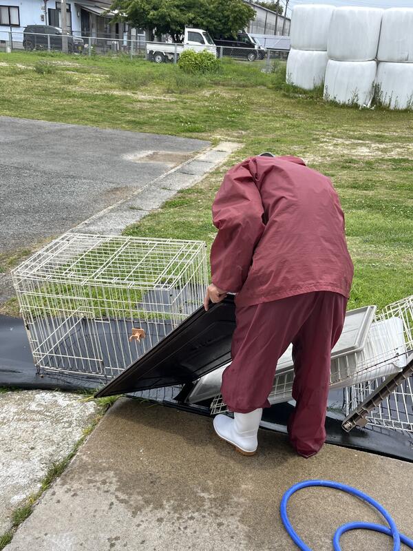 採卵鶏の敷料掃除や犬のケージ洗い、卵洗いやパック詰め・・・