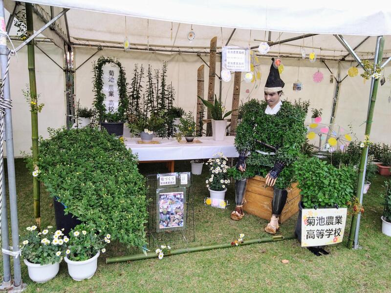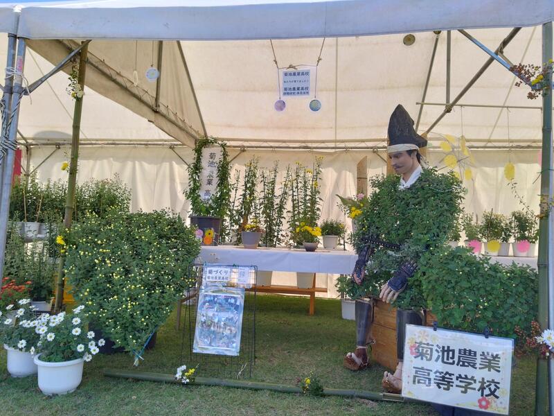 菊池農業高校園芸科では菊まつり実行委員会のご指導の下、菊池市の伝統「菊人形」や懸崖菊や仕立て菊などの菊づくりを行っています。生徒達は毎週の管理もコツコツと、新たな形も工夫して考えながら取り組みました。夏秋の高温(温暖化)により花が咲く時期がだんだん遅くなっていますので、まだ蕾の状態ですが、期間中に少しでも多く咲いてくれることを願っています。