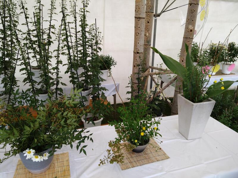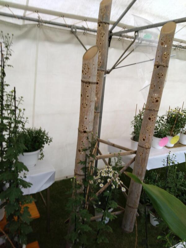 農業科プロジェクト生徒作の竹灯籠も飾らせてもらいました!和の雰囲気で菊と合い、風情があります。↓