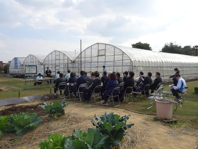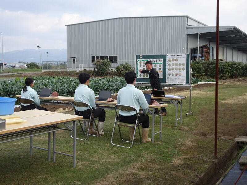菊池農業高校園芸科にはスーパーティーチャーの竹ノ内先生がいらっしゃいます。スーパーティーチャーとは農業の優れた指導力を活かして、県内の農業の先生の指導・助言を行う先生です。この日は県内の農業高校から野菜担当や農業の先生方が数多く見に来られました。