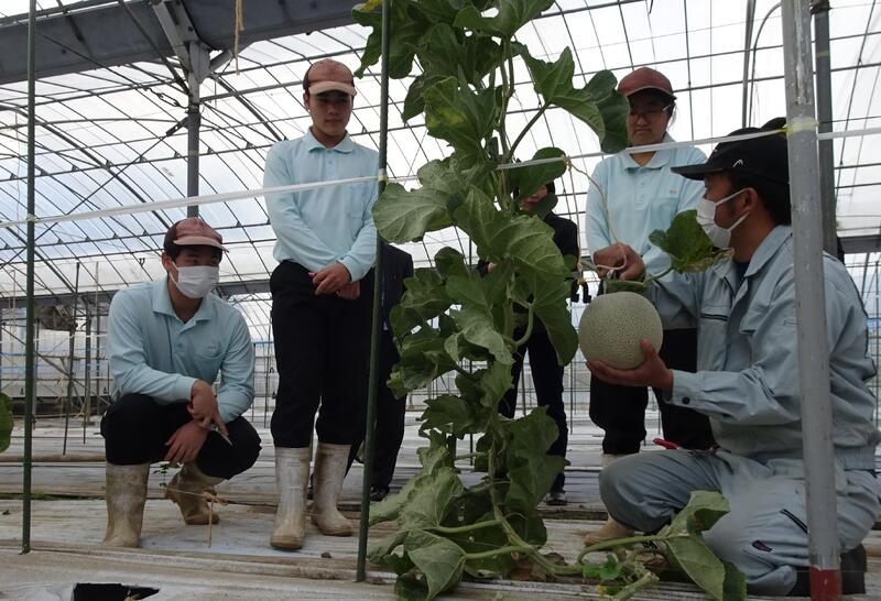 3年生では主にメロンの管理をしています。脇芽取りや誘引をしています。