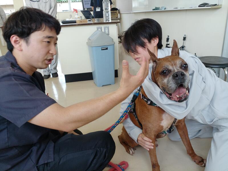 毎日の検温方法や、犬の固定方法などをご指導いただきました。