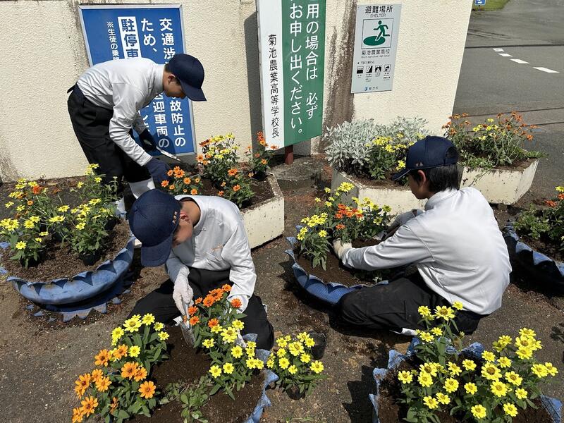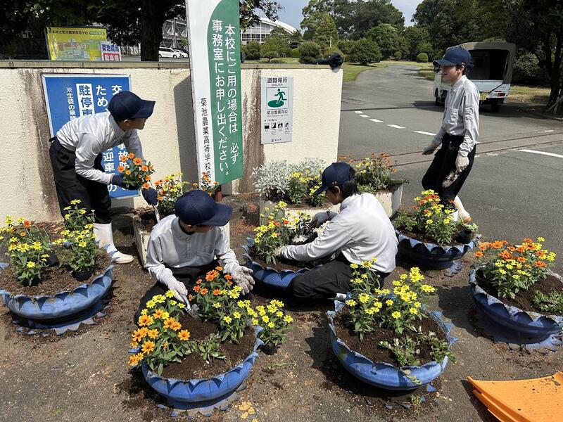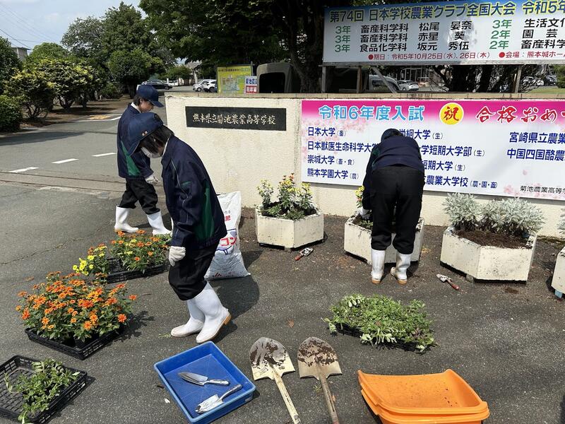 1年生総合実習(草花)の時間に正門前花壇の装飾をしました!