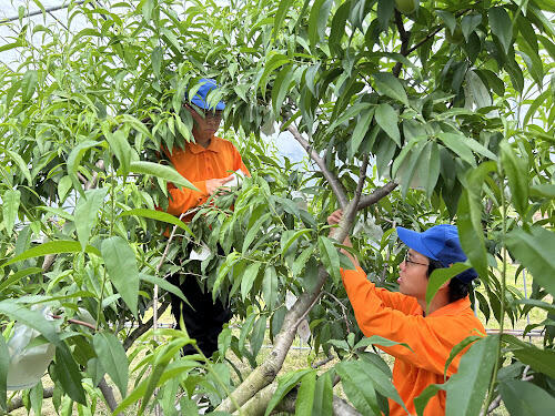 モモの袋掛け(園芸科)