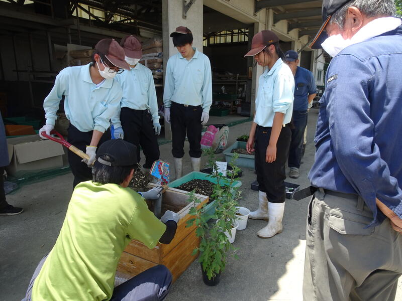 土の配合や植え方、挿し芽した苗の鉢上げの方法も、それぞれの生産者さんと本校の方法と違いがあり、いろいろな方法があることを学びました。これから大切に育てていきたいと思います。